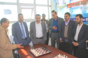 وقد لعب رئيس الجامعة النقلة الأولى ايذاناً بانطلاق البطولة التي يشارك فيها 97 لاعباً ولاعبة يمثلون مختلف كليات ومراكز الجامعة وموظفيها الذين يتنافسون على كأس رئيس الجامعة للشطرنج بنظام خروج المغلوب .